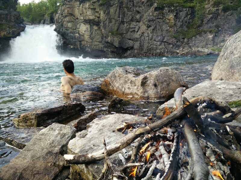 Unten am Wasserfall gibt es einen üppigen Vorrat an angeschgwemmten Feuerholz und kann man baden...